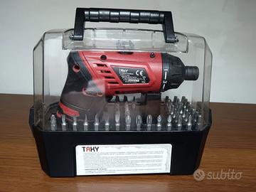 Vendo avvitatore Taky: Avvitatore/torcia led cordless con cassetta e 50 accessori. Alimentatore caricabatteria incluso.