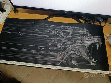 Vendo ampio tappetino per mouse da gaming a marchio Titanwolf, modello Epsilon. Il formato XXL è ideale per ospitare comodamente sia il mouse che la tastiera, garantendo un'ampia superficie di scorrimento e grande libertà di movimento durante l'utilizzo. Come indicato sulla confezione originale inclusa e verificabile dalle foto, le dimensioni esatte sono 900 x 400 mm (90 x 40 cm). La superficie superiore presenta una grafica molto curata con un lupo in stile mecha sui toni del nero e del grigio, ideale per arricchire l'estetica di qualsiasi postazione PC. Una caratteristica fondamentale è il retro, realizzato con un rivestimento in gomma antiscivolo che assicura una presa salda e impedisce al tappetino di muoversi sulla scrivania anche durante le sessioni di gioco più intense. Inoltre, i bordi sono interamente cuciti per prevenire sfilacciature nel tempo e resistere all'usura. L'articolo è in condizioni eccellenti. Resto a disposizione per qualsiasi dubbio o informazione aggiuntiva.
