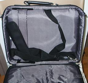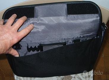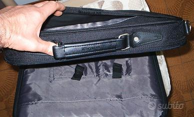 Caratteristiche aggiuntive: elegante materiale in nylon e koskin con finiture in nichel; numerose tasche per accessori per: cellulare, PDA, biglietti da visita, penne, chiavi e molto altro ancora; tasca posteriore per documenti a tutta lunghezza per trasportare e proteggere i tuoi documenti; tracolla staccabile; cinghia per bagagli per fissare la custodia al carrello; cinghia di fissaggio per notebook.