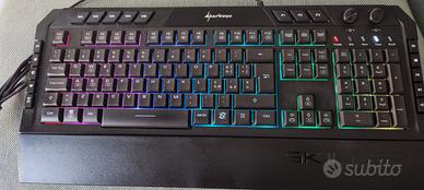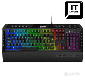 Sharkoon TASTIERA GAMING SKILLER SGK5 6 ZONE RGB, 5 TASTI MULTIMEDIALI, 3 PROFILI TASTO, USB, LAYOUT ITA con poggi polsi magnetico e rimovibile.Perfetta nel funzionamento.Non spedisco, scambio a mano su Roma zona San Giovanni.