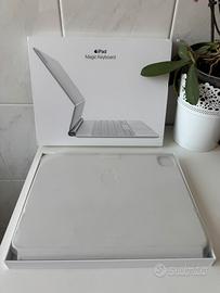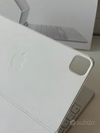 Tastiera Apple Magic Keyboard per iPad, colore bianco. Modello A2261 layout ITA tasti retroilluminati Perfettamente funzionante Compatibile con iPad Air (4th gen) Ipad pro 11"(1st 2nd 3rd gen) È leggermente consumata nel bordo, dove c’è la telecamera e in altri piccoli punti mostrati nelle ultime foto.