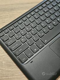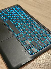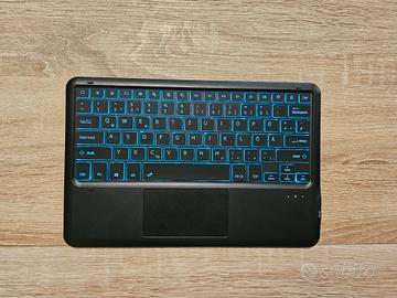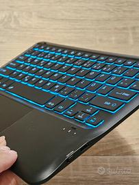 Tastiera QWERTZ Wireless Bluetooth Compatibile con tablet Android, Retroilluminata con vari colori, connessione senza cavi e/o chiavette usb. Con mouse pad integrato. Materiale ultraleggero e antiscivolo sul retro. Usata solo 2 volte al massimo, vendo per inutilizzo