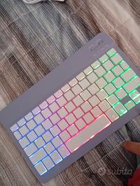 vendo questa tastiera per tablet a bluetooth nuova come potete vedere ancora in cellofan e in più ha anche il cavo, ha anche le luci fisse e cambia anche colori. Prezzo non trattabile!