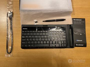 Tastiera Bluetooth Brookstone, con custodia e penna touch mai usata, in confezione originale ancora con pellicola.