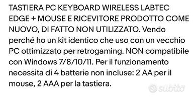 Vendo tastiera computer wireless NUOVA in confezione integra aperta solo per fare foto..