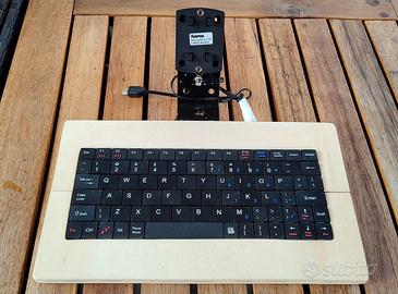 Tastiera con cavi e supporto cellulare/tablet, incastonata in supporto artigianale in legno