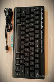 Tastiera da gaming Redragon, Membrana, formato 60%, retroilluminazione RGB, con cavo USB (type-A lato PC, type-C lato tastiera) incluso. Ha 4 macro-keys, e 5 tasti per scorciatioie multimediali. Possiede 22 tasti Anti-Ghost. La retroilluminazione è dinamica e può essere personalizzata cambiando colore, pattern, intensità dei led, velocità. Utilizzata solo in video unboxing, foto e test per il brand social 3D Tech di argomento tecnologico, perciò nuova di zecca, mai usata davvero, esclusivamente per prova e spacchettamento. E' quindi testata e funzionante al 100%, contattaci per qualsiasi info. Spedizione rapida ed imballaggio resistente.