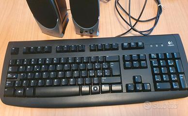 Tastiera e casse per PC in eccellenti condizioni. Con spina PS2 e presa jack, necessitano di adattatori per collegamento alle porte USB (facilmente reperibili).