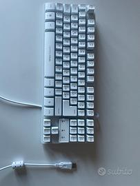 Vendo set da gaming composto da tastiera compatta bianca e mouse da gaming, entrambi con collegamento USB.