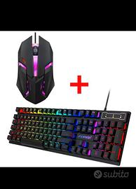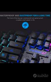 tastiera e mouse da gaming , tastiera meccanica retroilluminata a 104 tasti, set tastiera e mouse luminosi e impermeabili