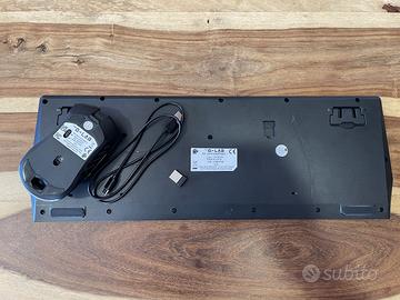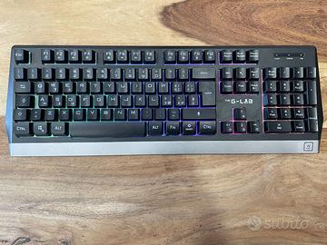 Vendo kit tasiera e mouse wireless G-Lab Keyz Tungsten funzionante fornito con il ricevitore USB unico per entrambi i dispositivi e il cavo di ricarica usb usbc. Il tasto "Bloc Maiusc" è stato sostituito fisicamente con un tasto "Maiusc"come visibile nelle foto. Il funzionamento del tasto è regolare. Caratteristiche tecniche: Connessione: Wireless 2.4 GHz. Tastiera: Layout italiano, retroilluminata RGB. Mouse: Retroilluminato con sensore regolabile. Batteria: Ricaricabile (cavo USB Type-C incluso per la ricarica). Ritiro: Solo a mano in zona Borghesiana o EUR. Non effettuo spedizione