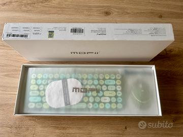 Tastiera e mouse wireless, tasti rotondi, design macchina da scrivere retro verde