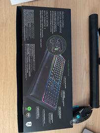 vendo tastiera gaming in perfette condizioni, unica pecca il poggia polsi da rifoderare (si può anche non usare visto che si attacca e stacca con delle calamite).