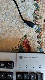 È una tastiera HP che ha qualche anno ma è funzionante e con le lettere intatte. Dotata di tastierino numerico e lettore di Smart card incorporato (non ho mai usato il lettore di carte: tutto lascia pensare che funzioni come il resto della tastiera). Solida, pesante, così come si faceva qualche anno fa. Attacco USB e cavo più lungo della media. Adatta a chi ama le belle cose solide. Ha qualche piccolo segno del tempo come le righette evidenziate nella foto 5