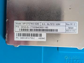 Vendo tastiera originale per computer portatile con layout ITALIANO (IT). La tastiera è elettronicamente funzionante (testata prima dello smontaggio), ma presenta danni estetici come visibile in foto. Ottima per chi cerca componenti specifici: - Cavo Flat: Integro e perfettamente funzionante. - Meccanismi: Cupole bianche di ritenuta in buone condizioni. - Tasti singoli: Molti tasti sono ancora presenti e riutilizzabili per sostituire tasti usurati o rotti sul vostro PC. Nota sulle condizioni: L'articolo è venduto nello stato in cui si trova, come pezzo di ricambio. Dati tecnici per compatibilità: - Modello: MP-07G76I0-5283 - P/N: 0KNO-EL1IT0209403001183 - Rev: R1.0 - Compatibile con molti modelli ASUS serie K52, K53, K70, N53, N61, X52, X53, X54 e molti altri (verificare P/N). Disponibile per consegna a mano a Roveredo in Piano o spedizione tramite TuttoSubito.