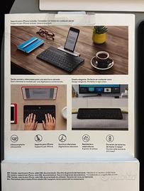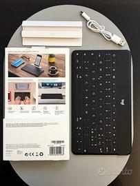 Vendo tastiera wireless Logitech Keys-To-Go (Layout Italiano), la soluzione definitiva per chi scrive in movimento. È incredibilmente sottile, leggera e silenziosa. Il prodotto è NUOVO, mai usato perché ne ho due, ancora nella sua confezione originale. Perfetta come idea regalo. Caratteristiche Principali: Ultra-Portatile: Spessa solo 6 mm e lunga 24 cm, sparisce in qualsiasi borsa o custodia per tablet. Resistente a tutto: Rivestimento in FabricSkin che la protegge da schizzi d'acqua, briciole e sporco. Si pulisce con un colpo di panno. Digitazione Silenziosa: Tasti morbidi e reattivi, perfetti per prendere appunti in biblioteca, in treno o durante le riunioni senza disturbare. Batteria Infinita: Una singola carica dura fino a 3 mesi (basato su un utilizzo medio di 2 ore al giorno). Supporto incluso: Nella confezione è presente il supporto agganciabile per sorreggere lo smartphone o il tablet mentre scrivi. Compatibilità: Funziona con tutti i dispositivi Bluetooth (iPhone, iPad, Android, Apple TV, Tablet e PC). Layout: Italiano. Ritiro a mano Disponibile