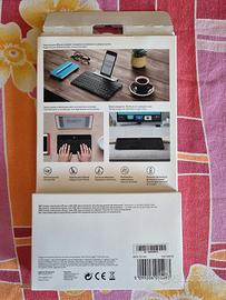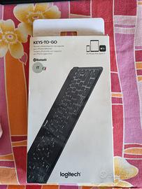 Tastiera Logitech modello keys to go bluetooth compatibile con iphone, ipad, Apple tv. Layout Qwerty, condizioni pari al nuovo. Completo di supporto per iphone e cavo di ricarica.