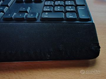 Tastiera Logitech MK850, Wireless PC/Mac, Layout Italiano QWERTY Logitech MK850 Kit Tastiera Wireless Multi dispositivo, Wireless e Bluetooth 2.4 GHz, 12 Tasti Programmabili, PC/Mac, Layout Italiano QWERTY, Nero tastiera wireless MK850 è personalizzabile grazie al software Logitech Options. Scegli 12 tasti rapidi preferiti Progettata per la digitazione prolungata, la tastiera wireless è dotata di un supporto per polsi imbottito e di piedini inclinabili regolabili compatibile con Windows, Mac, ChromeOS e Android Associa Fino a 3 Schermi: Passare da PC, laptop e Mac è semplice con MK850; digita e passa senza interruzioni tra tablet, computer, telefono; associa 3 dispositivi con ricevitore Bluetooth o USB Logitech DuoLink: Collega tastiera wireless per un'alta personalizzazione e un'ottima navigazione è in buono stato e perfettamente funzionante, l'appoggiamano sul lato destro della tastiera non è usurato ma un po' in rilievo, poco visibile. nell'imballo originale, solo la tastiera, non è incluso il mouse ma la chiavetta di connessione Bluetooth come in foto