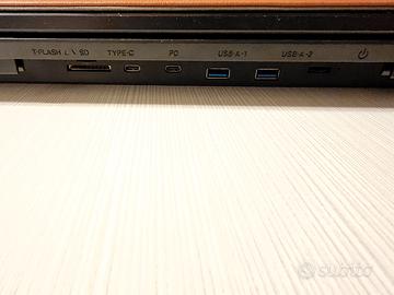 Presenta diversi porte: 1 x tipo C per la connessione, 1 x tipo C PD, 2 x tipo A USB 3.0 e 1 x lettore schede SD/TF.