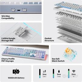 ATTENZIONE LEGGERE PRIMA EPOMAKER TH108 Tastiera Meccanica Full Size, Tastiera da Gioco Wireless con Batteria da 8000mAh, Creamy Gasket, 108 Keys, Hot Swap, Custom Driver, RGB Backlight la tastiera viene venduta come nella prima foto compreso dei suoi keycaps,il suo cavo di alimentazione e il suo accessorio(no switch) no perditempo o affaristi spedisco solo tramite questa piattaforma si prega di scegliere inpost come spedizione per rapidita'e sicurezza il prezzo non e'trattabile,e compreso a questa tastiera,do anche 4 kit di keycaps aggiuntivi la tastiera e stata usata solo per fare una prova,ma non mi ci trovo per questo e'in vendita grazie