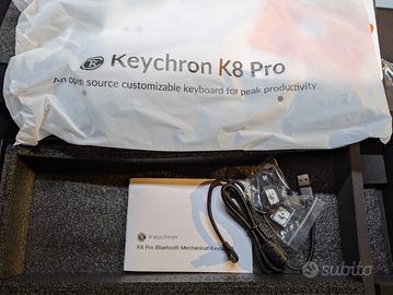 Vendo tastiera meccanica Keychron K8 Pro. - funzionamento con bluetooth - switch gateron rossi intercambiabili - cornice in alluminio - led rgb - layout US Condizioni ottime, vendo per passaggio ad altro modello. Preferenza per scambio a mano.