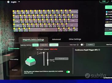 fun 60 ultra tri mode bianca come nuova Senza scatola, senza ricevitore 2.4ghz (purtroppo perso) ma utilizzabile con BLUETOOTH e Cablata (che è il vero senso di questa tastiera competitiva dato che è l'unica modalità con 0 input lag e che può utilizzare gli switch magnetici al massimo delle potenzialità. Ottima per gaming ma ho bisogno di una 100% quindi vendo incluso cavo coiled