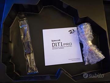 Tastiera meccanica Redragon K585 DITI 42 tasti a una mano, switch rossi lineari intercambiabili. La tastiera ad una mano è l'ideale per giochi FPS o per chi gioca con il Notebook perchè libera molto spazio avanti. Dotata di poggiapolso magnetico sganciabile, retroilluminazione RGB totalmente configurabile, offre connettività Wireless 2,4 ghz con dongle USB, via Bluetooth oppure può essere utilizzata cablata con cavo USB type C.