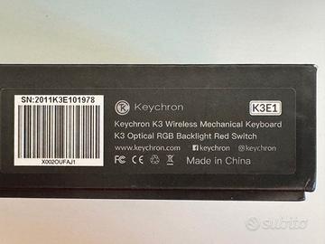 Vendo Keychron K3 v1 ultra-slim, meccanica, con switch ottici rossi hot-swappable e retroilluminazione RGB. Tastiera elegante e compatta, ideale per chi cerca precisione, velocitĂ e design minimale. Layout US (americano).