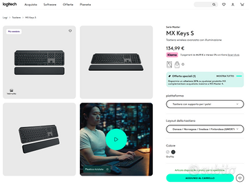 Vendo tastiera Logitech MX Keys S Plus (tastiera layout ita + poggia polsi della versione plus), nuova mai utilizzata (prezzo originale sito Logitech 134.99 euro). Supporta 3 dispositivi, ricarica USB-C, connessione Bluetooth o tramite dongle USB logitech unifying receiver. Spedizione, o ritiro a mano a Modena.