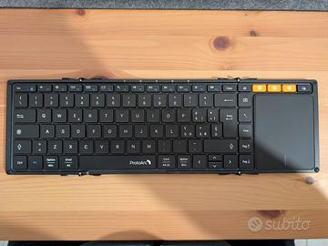 Vendo tastiera portatile e pieghevole PROTOARC modello XK01 TP. Connessione bluetooth con touchpad incorporato. Completa di cavo USB type A/C per la ricarica, custodia in ecopelle e cavalletto di supporto per dispositivi (tablet, schermi portatili, smartphone...).