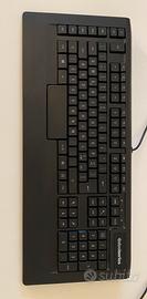 Tastiera Professionale SteelSeries Apex Raw: tastiera gaming con tasti a profilo basso per risposta rapida e precisione. 15 tasti macro programmabili, retroilluminazione a singolo colore e controlli multimediali. Personalizzabile con SteelSeries Engine per massime prestazioni e comfort ergonomico.
