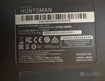 Vendo tastiera Razer Huntsman originale, in ottime condizioni. Switch Opto-Mechanical: veloci, precisi e molto resistenti (fino a 100 milioni di pressioni). Illuminazione Razer Chroma RGB, cavo intrecciato USB, layout ITA. Incluso: • tastlera • scatola originale • manuali e adesivi Razer • imballo completo La tastiera funziona perfettamente, mai avuto problemi. Vendo per passaggio a modello diverso.