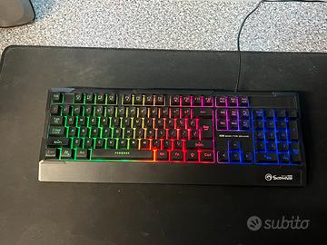 vendo in ottime condizioni tastiera da gaming SCORPION MARVO MA-K606 SP in nero è una tastiera da gaming ad alte prestazioni progettata per i giocatori competitivi. Presenta un design elegante ed ergonomico con retroilluminazione RGB personalizzabile, che ti consente di creare una configurazione di gioco personalizzata.