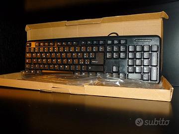Vendo Tastiera TECHly 105 tasti USB, nuova, per inutilizzo. Design ergonomico e resistente con membrana silenziosa e morbida al tatto per un'ottima risposta alla pressione. Sistema di inclinazione per permettere una posizione confortevole durante la battitura. Compatibile Windows 98SE/ME/2000/NT/XP/Vista/7/8/10. Indicatori LED per Num Lock, Scroll e Caps. Dimensioni: 44x15x3.5 cm; Cavo: 1,5 m; Peso 510 g. spese spedizione incluse.