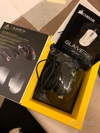 La tastiera si vende completa di mouse Corsair Gaming Glaive RGB. Risoluzione nativa 16000 DPI, retroilluminazione a 3 zone dinamica multicolore e 6 pulsanti programmabili.