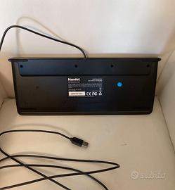 Tastiera USB italiana compatta Hamlet XKKITA400CU nera completa di manuale di istruzione e scatola, tasti a membrana per una digitazione silenziosa e confortevole, installazione plug & play, cavo USB tipo A da 1,8 metri, dimensioni cm 32 X 14 X 25 (L X P X A), requisiti di sistema Windows 7/8/10/11, Mac, Linux e Android, mai utilizzato