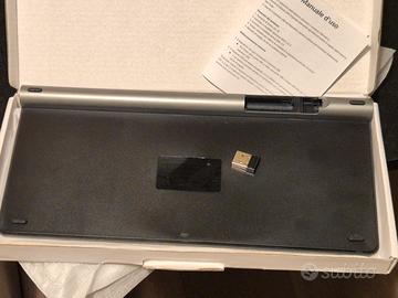 tastiera per pc con chiavetta usb (si connette come i mouse senza fili) argento piccola e super piatta. ottimo design con layout italiano