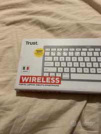 Tastiera wireless Bluetooth compatibile con pc, laptop, tablet e smartphone della trust, mai usata.