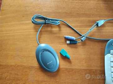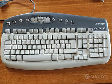 Tastiera wireless Microsoft con basetta per collegamento a PC desktop e notebook (doppio connettore). Richiede 2 stilo AA. Completo di cavi, CD e documentazione originale. Non ho più il mouse.