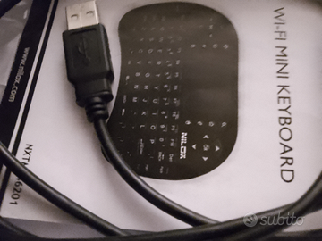 - tastiera mini ergonomica wireless con touchpad integrato . per controllo del tuo PC . tablet - console -box TV androide pronta consegna colore nera con chiavetta USB .cavetto USB per caricare