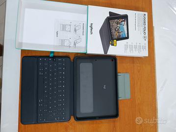 Custodia protettiva con tastiera Logitech Rugged Folio per iPad. in ottimo stato,usata due volte, Perfetta. - Compatibile con iPad (7ª, 8ª e 9ª generazione). - Layout Spagnolo QWERTY. - Colore Nero.