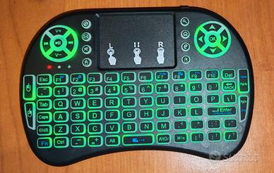 Tastierina wifi,touchpad, layout english, wi-fi con la sua chiavetta USB, tastiera retroilluminata a 5 colori, batteria ricaricabile.