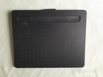 Wacom Intuos – tavoletta nera con penna da collegare al pc per poter eseguire disegni, ritoccare foto e creare immagini a piacere. La penna lavora col metodo di risonanza magnetica ed è priva di batteria. Dim. 200x160x8 mm. Mai usata e nella sua confezione originale.