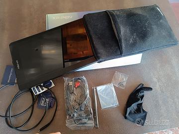 tavoletta grafica usata UNA volta quindi praticamente nuova con 2 tipologie di cavi per collegamento al computer, compatibile con mac, astuccio originale, guanto, pezza per pulire punte intercambiabili mai aperte vendo tutto a 200€ considerando che solo la tavoletta senza accessori costa 250.