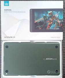 Schermo IPS Full HD da 13,3" completamente laminato con pellicola antiriflesso e colori vividi. Completa di scatola, penna originale con portapenna e punte di ricambio, guanto, cavi di collegamento (USB/USB‑C/HDMI) e manuale.