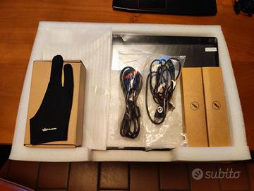 Tavoletta grafica a schermo grande 19,5 pollici con risoluzione 1920x1080 e 8192 livelli di pressione; compatibile da Windows 7 in poi e da MacOs 10.11 in poi. Usata poco e tenuta in ottime condizioni con tutto l'imballaggio originale e gli accessori. La vendo nonostante le ottime prestazioni perché non avendo una postazione fissa e un grande spazio, prediligo tavolette più piccole, leggere e facilmente trasportabili. Altamente consigliata per chi ha bisogno per lavoro di una buona tavoletta a schermo o per uno studente universitario nel settore video e grafica. La confezione comprende: Tavoletta Supporto regolabile montato/da montare (secondo richiesta) 2 penne Guantino cavo per ricare la penna cavi d'alimentazione e usb e hdmi Pellicola protettiva per lo schermo CD driver e istruzioni Sono disponibile per qualsiasi info e se la distanza lo permette ci si può anche organizzare per la consegna a mano.