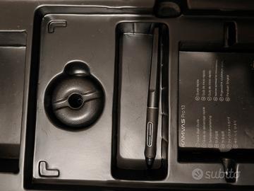 Originale professionale marchio Huion. Comprende cavo ricarica e connessione al pc, pennino e supporto, guanto per maggiore precisione, supporto per la tavoletta. Il monitor del pc viene proiettato sulla tavoletta per disegnare con precisione