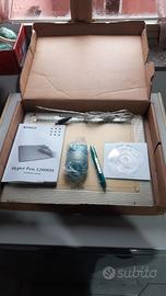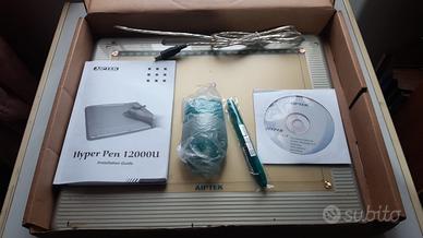 VINTAGE Una tavoletta grafica Aiptek HyperPen 12000U, un dispositivo di input "vintage" (rilasciato intorno al 2002-2006) utilizzato per il disegno digitale e il fotoritocco. Dispone di una superficie di lavoro generosa di circa 30x40. Il kit originale comprende la tavoletta, una penna stilo senza fili (alimentata a batteria), un mouse senza fili (anch'esso funzionante solo sulla tavoletta) e un CD con i driver. Offre 512 livelli di sensibilità alla pressione e una risoluzione di 3048 LPI. Sono presenti anche 24 pulsanti macro-programmabili lungo il bordo superiore per scorciatoie rapide. Compatibilità e Utilizzo Oggi Sebbene sia un hardware datato, può ancora essere utilizzato con alcune accortezze: Originariamente progettata per Windows 98/XP, alcuni utenti segnalano che può funzionare su Windows 10 installando i driver più recenti disponibili o utilizzando la modalità compatibilità. È nota per avere un discreto supporto "out-of-the-box" su diverse distribuzioni Linux (come Ubuntu o Fedora), dove viene spesso riconosciuta automaticamente. Ricorda che la penna richiede una batteria (solitamente una mini-stilo AAA) per funzionare. Oggetto da collezione TESTATO e FUNZIONANTE, con piccoli segni di usura dovuti al tempo trascorso. Tutto come da foto.