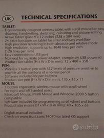 TAVOLETTA GRAFICA TRUST CON PENNA E MOUSE WIRELESS MAI USATA IMBALLATA WIRELESS TABLET