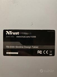 Vendo per inutilizzo tavoletta grafica Trust TB5300 Slimeline, compatibile per Windows. Area di lavoro 185x135 mm